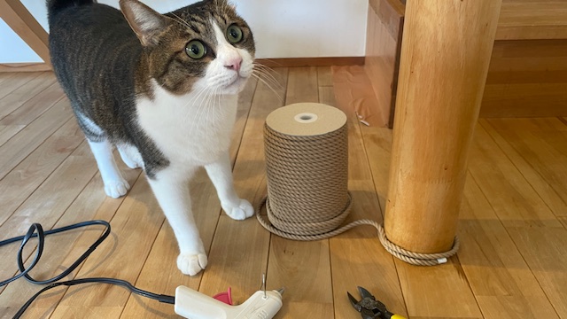 家の柱を猫の爪研ぎにすべく重い腰を上げたトーチャン と、 邪魔をする承太郎 | かねごんのつれづれ日記 | バイク、お仕事、日常生活について、そこはかとなく語るBLOG(ブログ)です。 | YZF-R1をこよなく愛するかねごんのYZF-R1日記