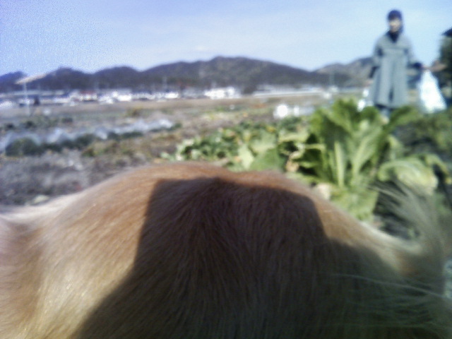 ウチのオカンと嫁さんは畑で野菜を物色。ワシはお犬様のお相手。
