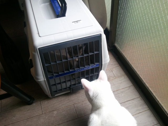最初はお互いに警戒モードやったけど、この後激しい運動会が室内で繰り広げられることになったのでした(泣)