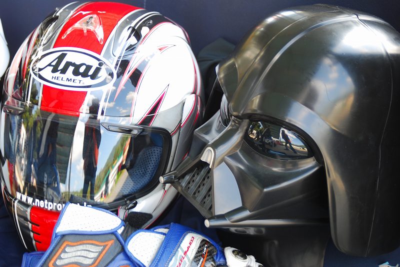 予備のヘルメットって?これ被って前見えるのか?つーか車検通らんじゃろw