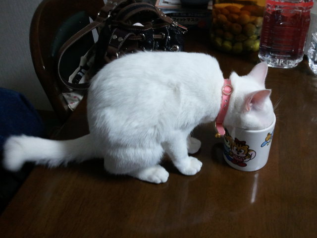 変な格好で水を飲むユキちゃんw