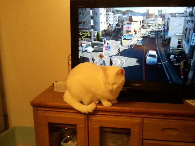 そこに居座られるとリモコンが使えんし(泣)