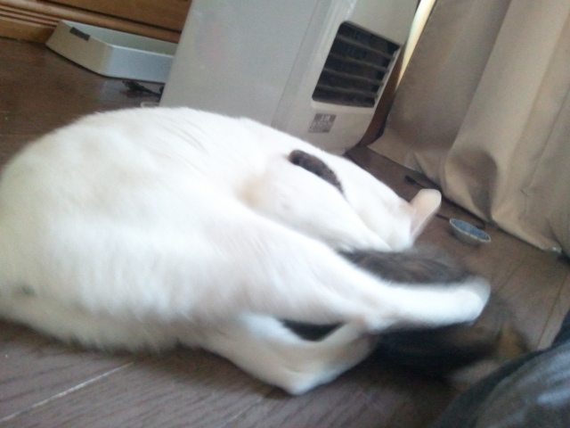 人の膝の上で爆睡する。