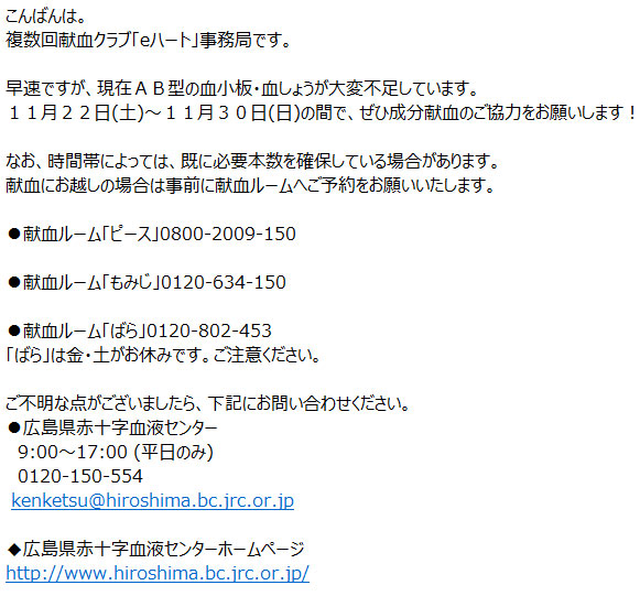 AB型成分献血のお願い