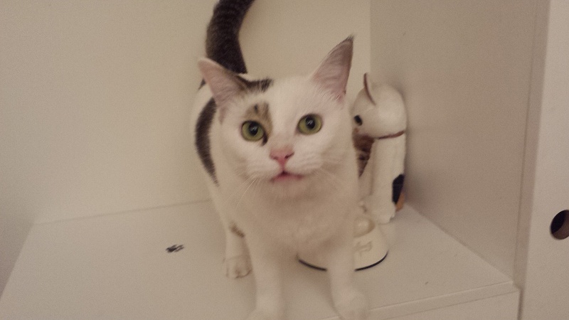 カリカリを必死の形相でおねだり中のテルちゃん、