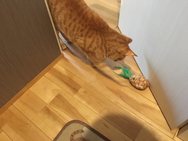 本日のトラオ君からの貢物は、果物(パイナップル)でした。