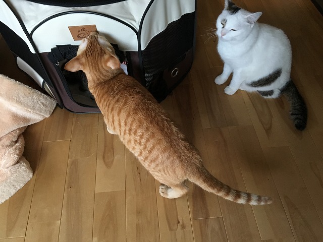 お気に入りのトイレに入れないトラオ君の図(笑)