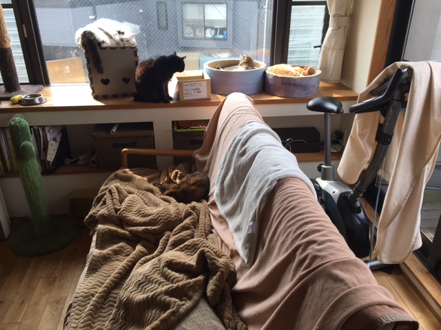 人が床につくと鈴の入ったおもちゃで遊び出す奴ら。