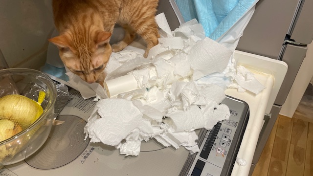 荒ぶるトラオ キッチンペーパーを瞬殺する